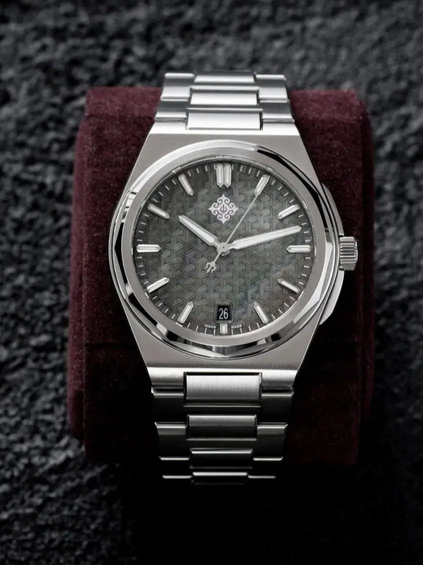 Featuring a scratch-resistant sapphire crystal dial, this watch ensures durability and clarity for easy time reading.